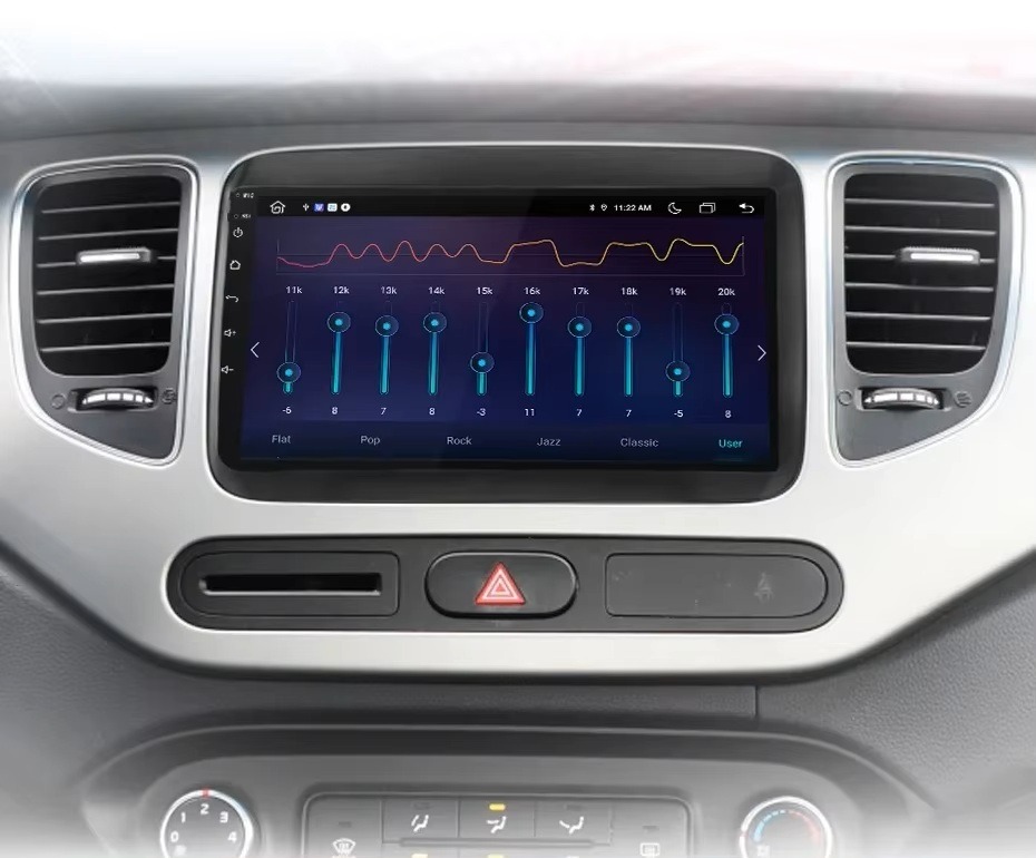 KIA Carens Multimédia beépítőkerettel, amely pontosan illeszkedik a műszerfalhoz. Vezeték nélküli Apple Carplay / Android Auto funkcióval.