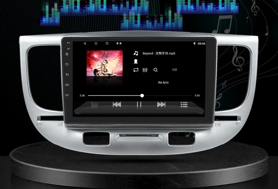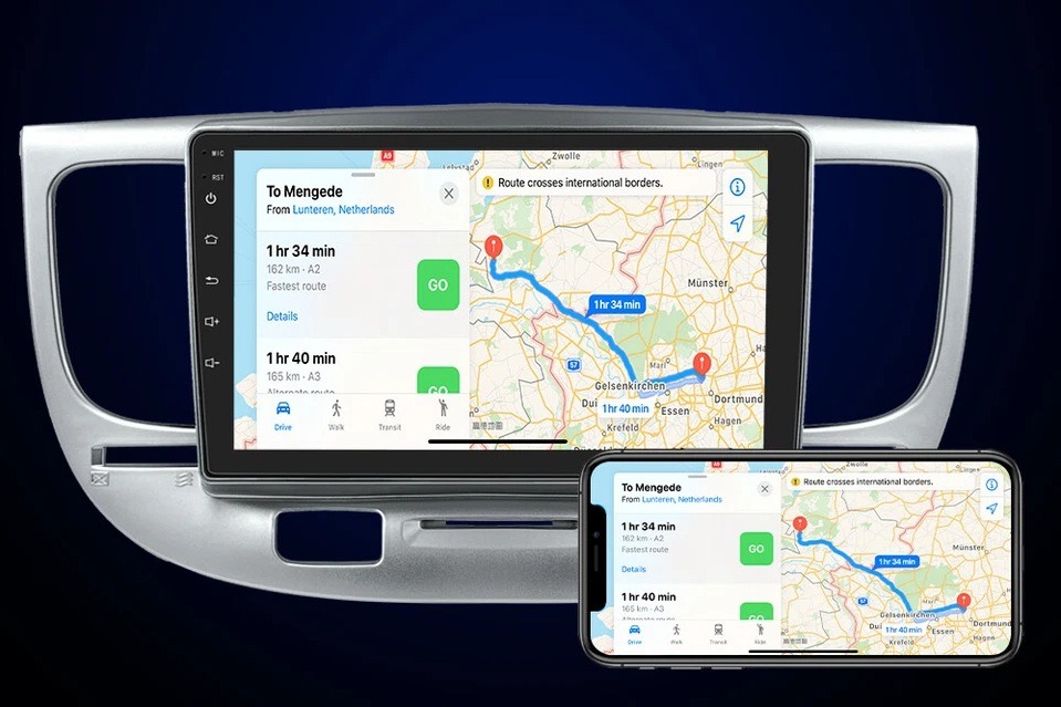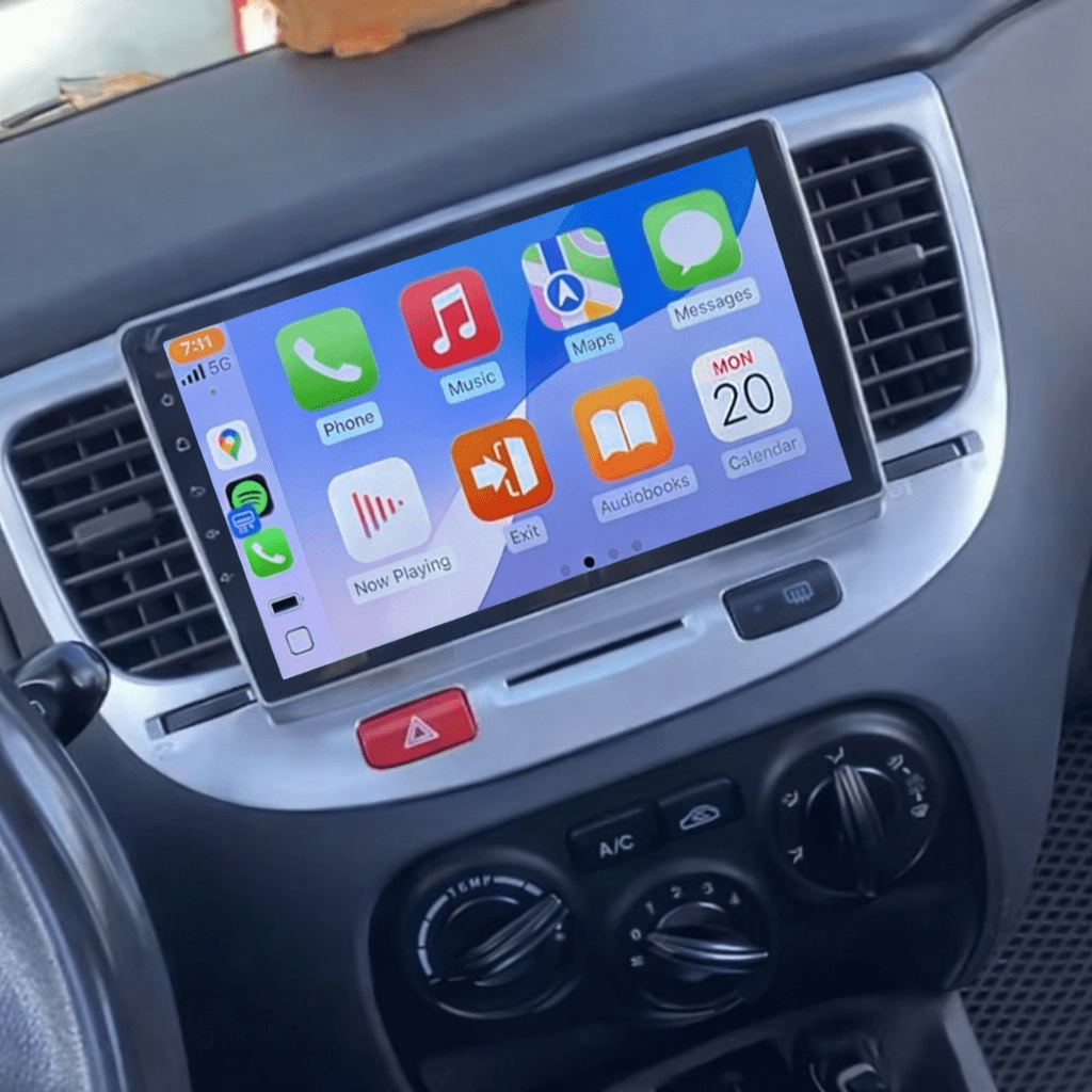 KIA Rio 2 Multimédia beépítőkerettel, amely pontosan illeszkedik a műszerfalhoz. Vezeték nélküli Apple Carplay / Android Auto funkcióval.