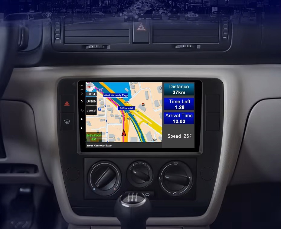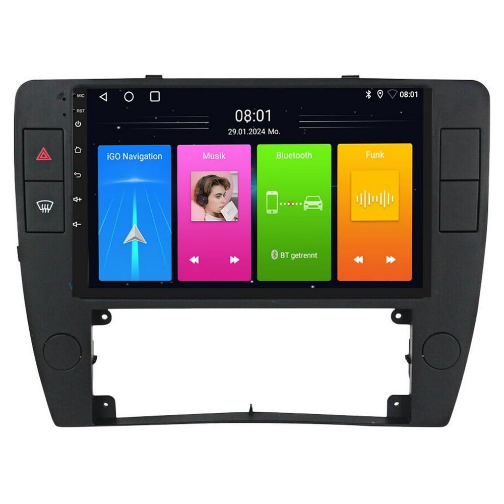 Volkswagen Passat B5 Multimédia beépítőkerettel, amely pontosan illeszkedik a műszerfalhoz. Vezeték nélküli Apple Carplay / Android Auto funkcióval.